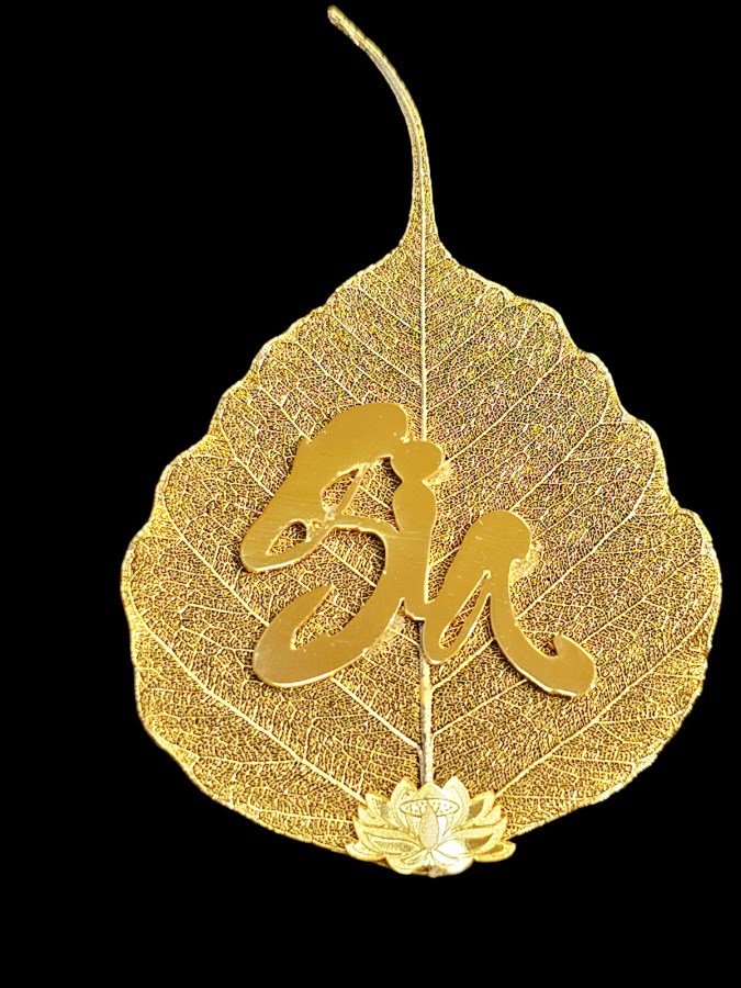 Lá Bồ đề mạ vàng chữ Tâm trên đế Sen