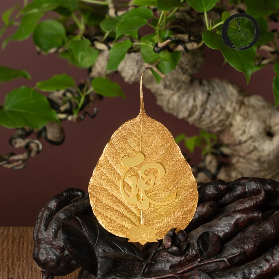 Lá Bồ đề mạ vàng chữ Tâm trên đế Sen