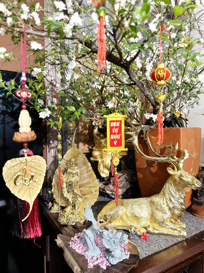 - Các lá Bồ đề có gắn biểu tượng linh vật hoặc chữ: An, Tâm, Phật, Nhẫn, Sống, Phúc, Lộc, Thọ, Hiếu.